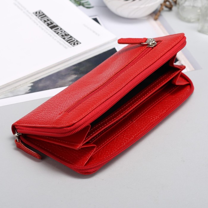 Кошелёк женский на молнии, 2 отделения, отдел для монет, флотер, красный