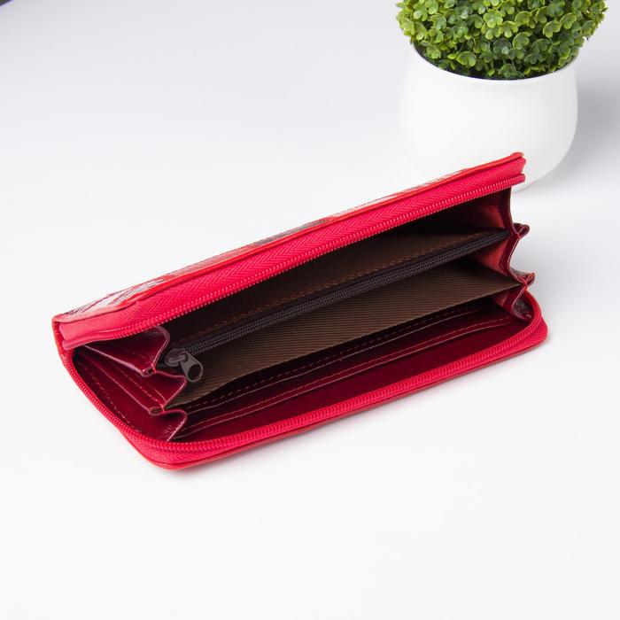 Кошелёк женский на молнии, 3 отдела, для карт, для монет, ручка, цвет комбинированный красный