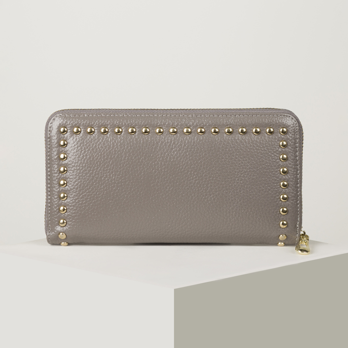 Кошелёк женский на молнии, 3 отдела, для карт, монет, цвет серый