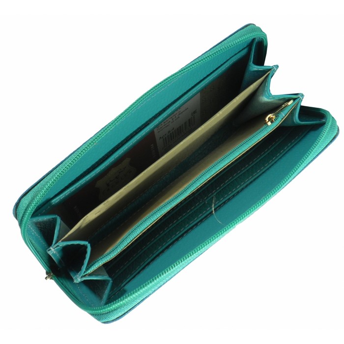 Кошелёк женский на молнии, 3 отдела для купюр, для монет, для кредитных карт, цвет бирюзовый