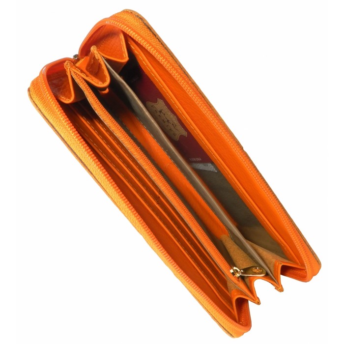 Кошелёк женский на молнии, 3 отдела для купюр, для монет, для кредитных карт, цвет оранжевый