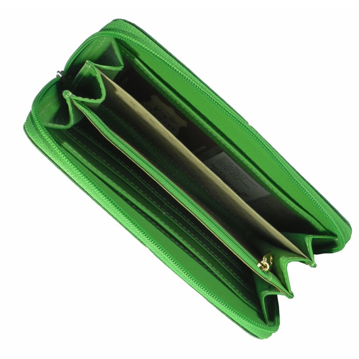 Кошелёк женский на молнии, 3 отдела для купюр, для монет, для кредитных карт, цвет зелёный