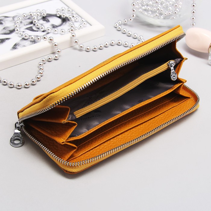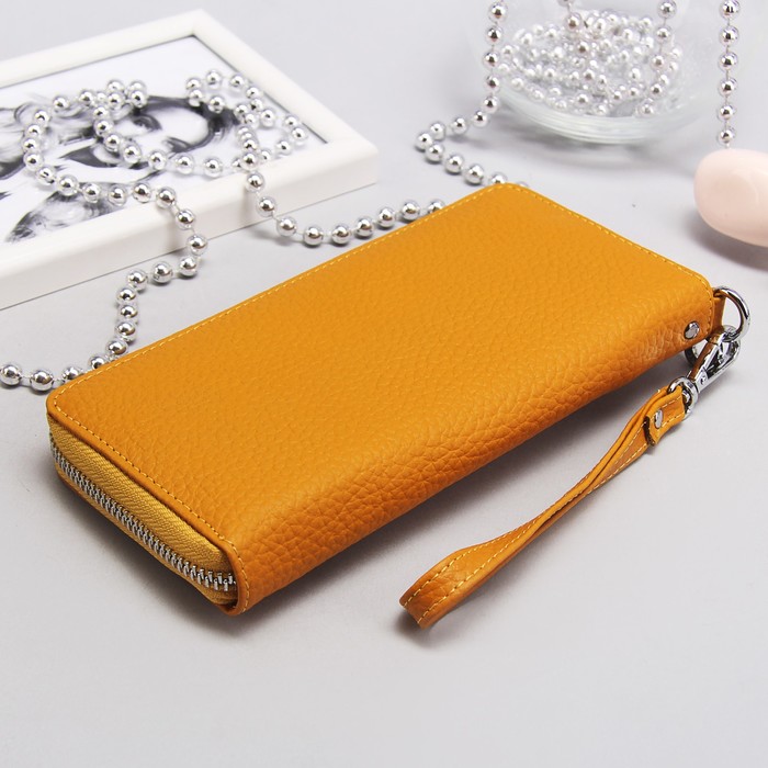 Кошелёк женский на молнии, 3 отдела, отдел для кредиток и монет, с ручкой, цвет флотер жёлтый