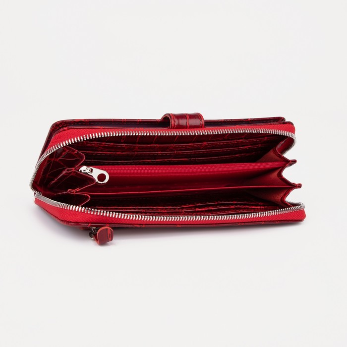 Кошелек женский на молнии, 3 отдела, визитница на 16 листов, карман для мелочи, скат красный