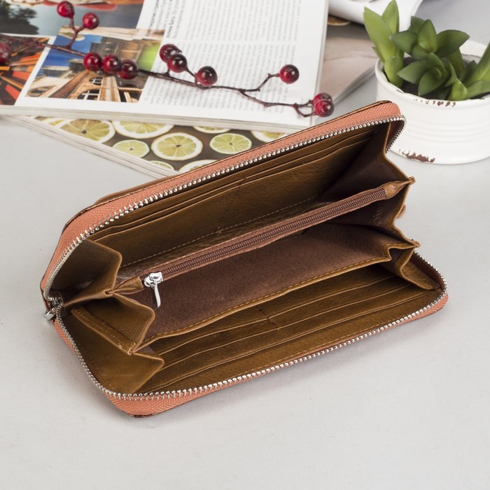 Кошелёк женский на молнии, 4 отдела, отдел для карт, с ручкой, цвет коричневый