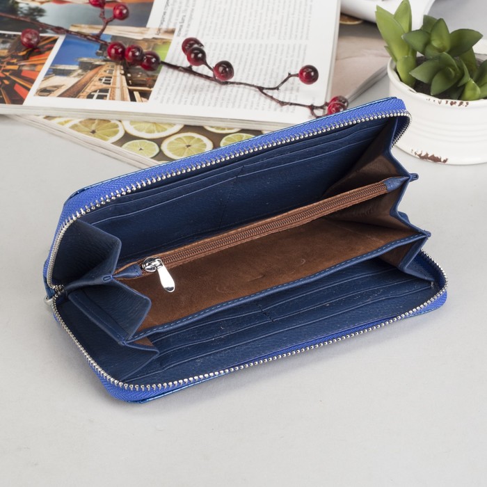 Кошелёк женский на молнии, 4 отдела, отдел для карт, с ручкой, цвет синий