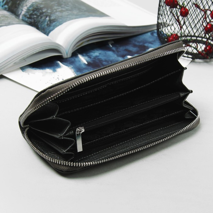 Кошелёк женский на молнии, 4 отдела, отдел для монет, цвет серый