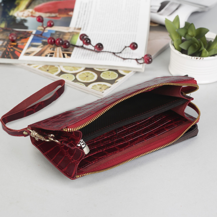 Кошелёк женский на молнии, 4 отделения, отдел для монет, с ремешком, красный скат