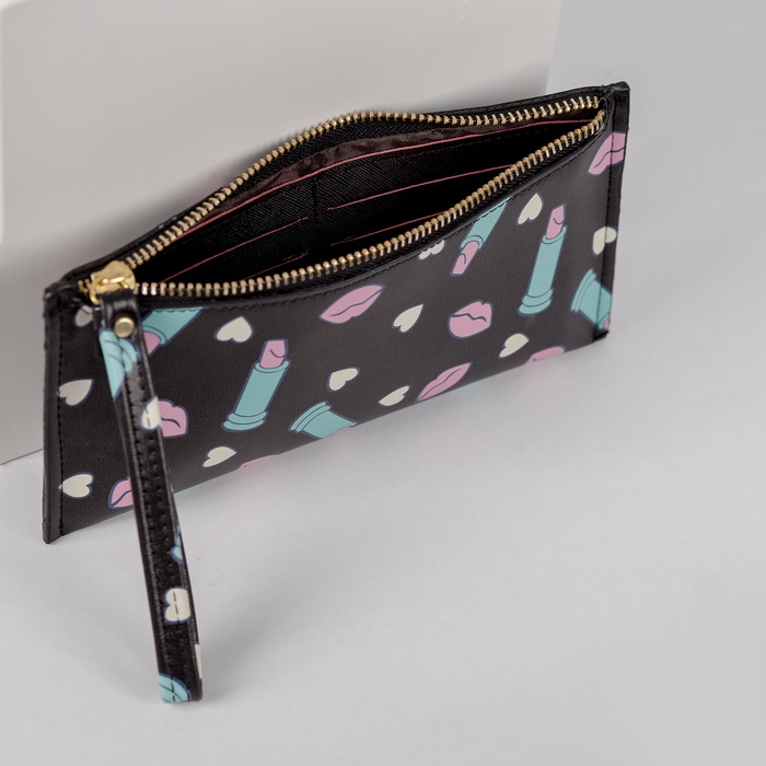 Кошелёк женский на молнии "Губки", с ручкой, 1 отдел, для карт, цвет чёрный