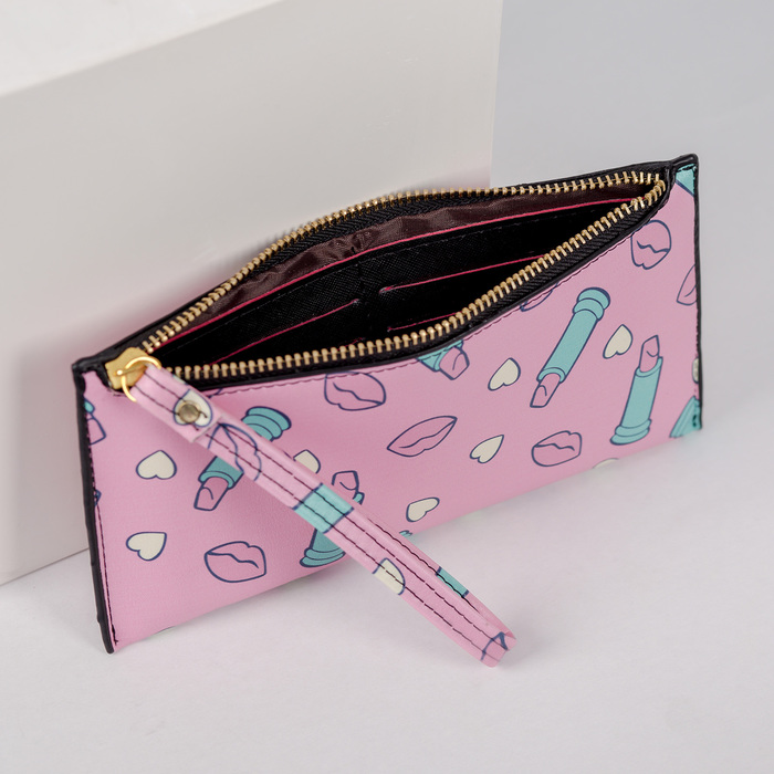 Кошелёк женский на молнии "Губки", с ручкой, 1 отдел, для карт, цвет розовый