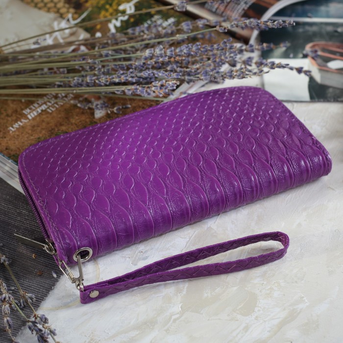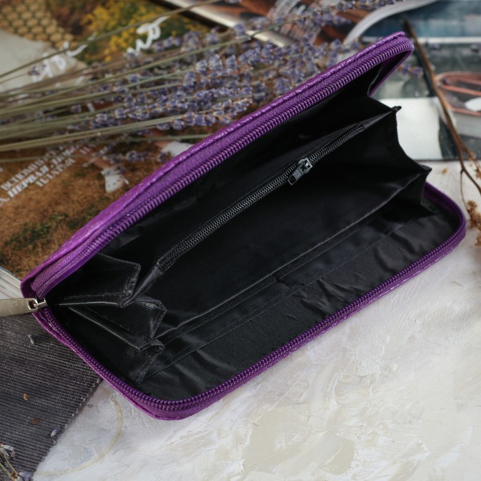Кошелёк женский на молнии, с ручкой, 2 отдела, отдел для монет, карт, цвет фиолетовый