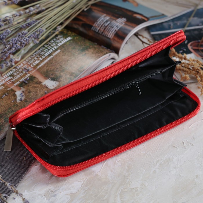 Кошелёк женский на молнии, с ручкой, 2 отдела, отдел для монет, карт, цвет красный