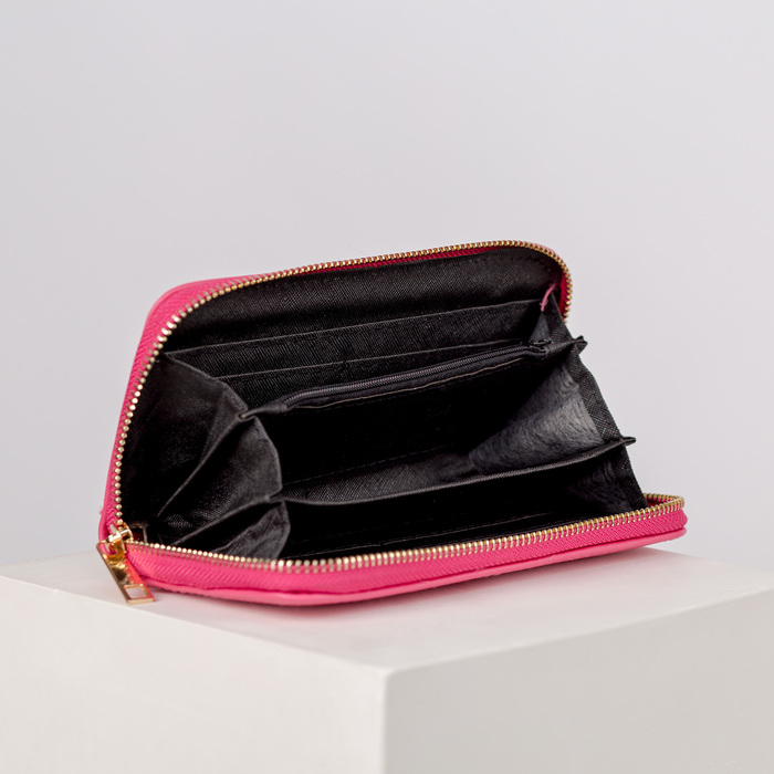Кошелёк женский на молнии, с ручкой, 3 отдела, отдел для карт, монет, цвет розовый