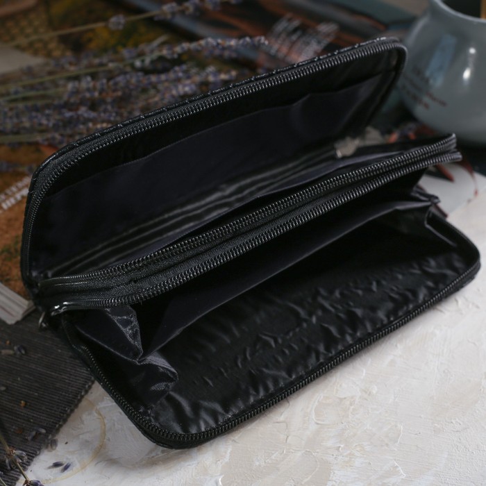 Кошелёк женский на молнии, с ручкой, 5 отделов, отдел для карт, цвет чёрный