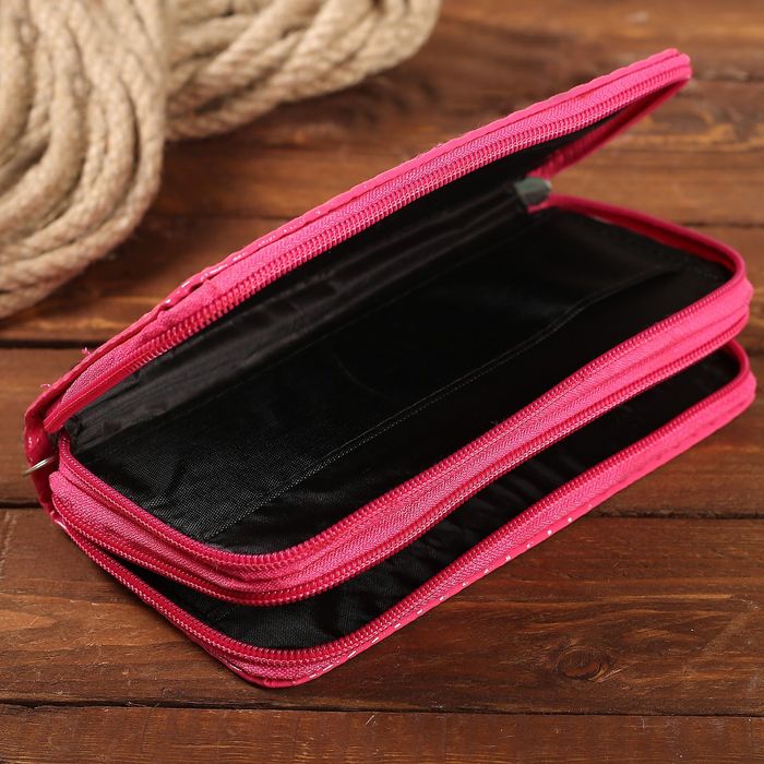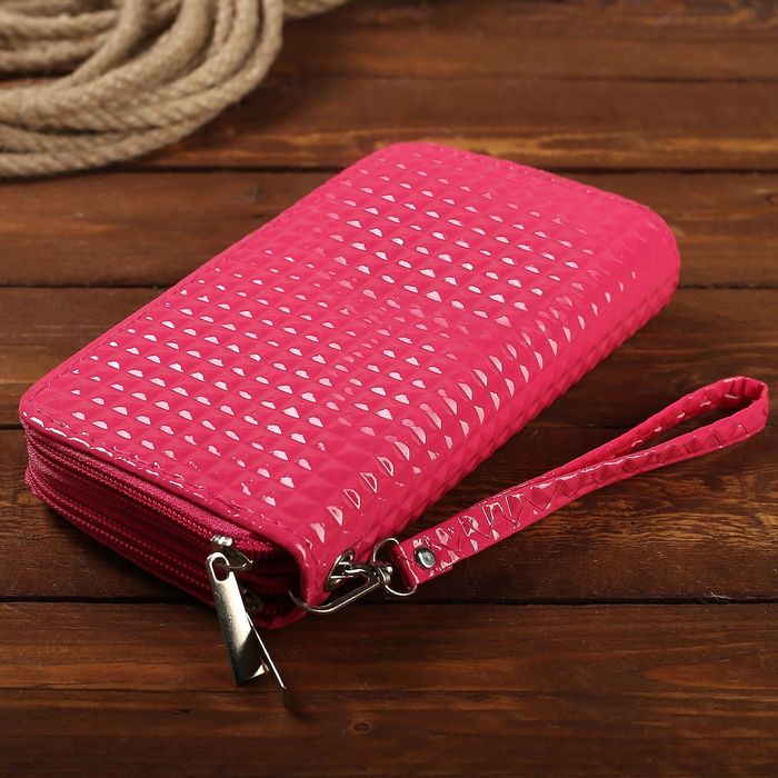 Кошелёк женский на молнии, с ручкой, 5 отделов, отдел для карт, цвет розовый