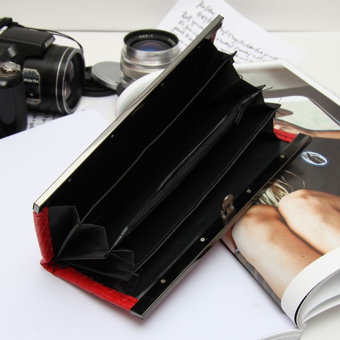 Кошелёк женский на застёжке, 4 отдела, для монет, для карт, цвет красный