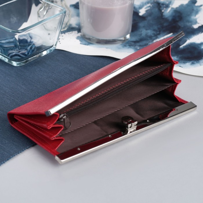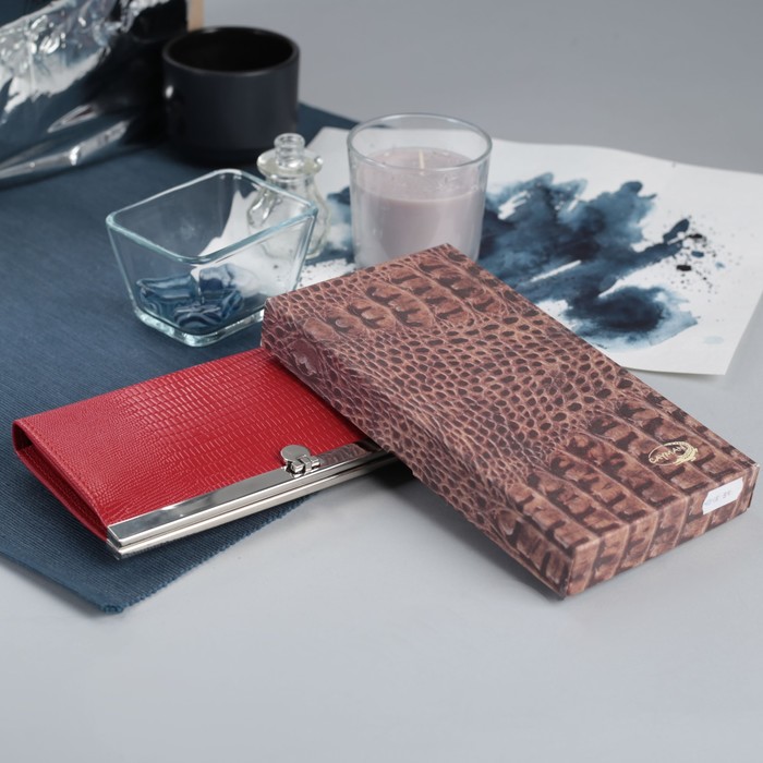 Кошелёк женский на застёжке, 4 отдела, отдел для карт, 1 наружный карман, алая игуана