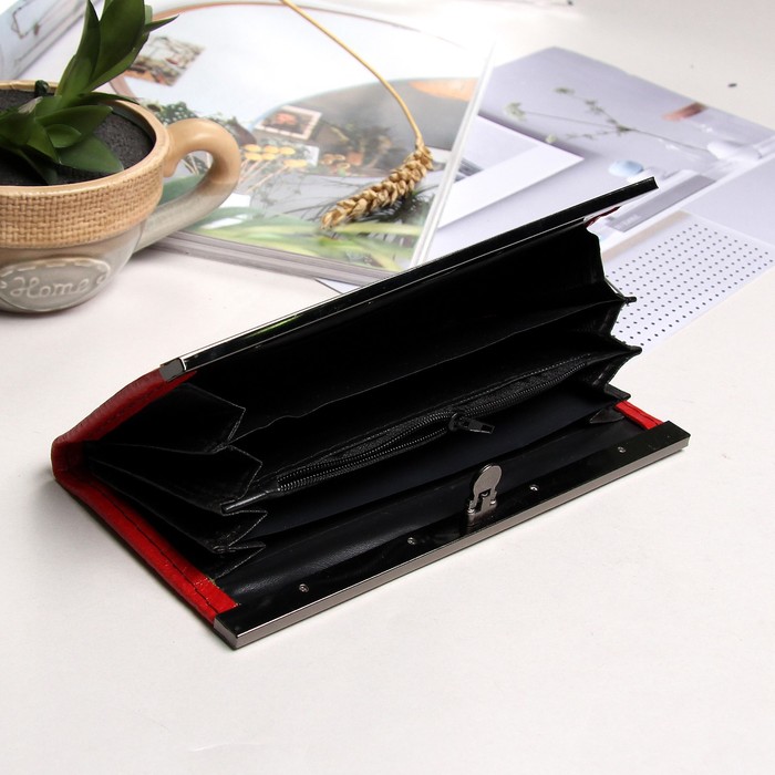 Кошелёк женский на застёжке, 5 отделов, для карт, цвет красный