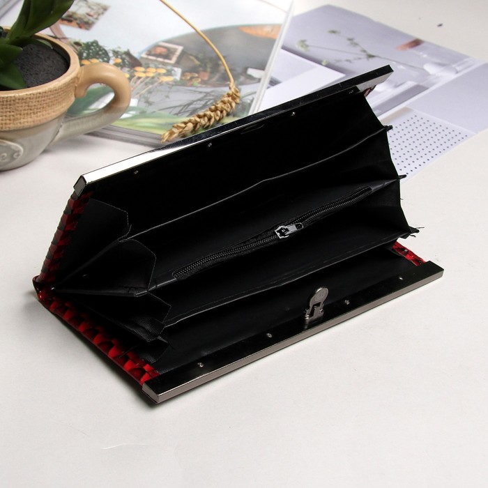 Кошелёк женский на застёжке "Альма", 4 отдела, лакированный красный