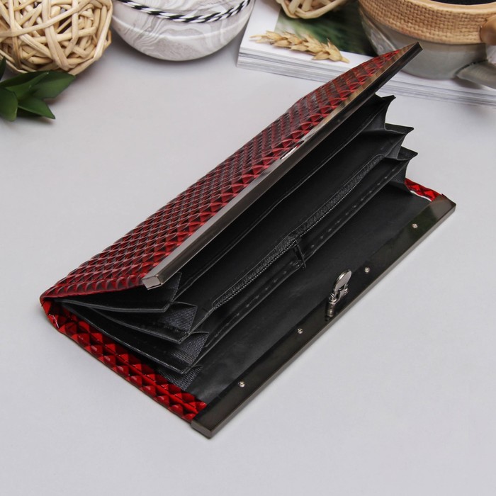 Кошелёк женский на застёжке "Сью", 5 отделов, красный