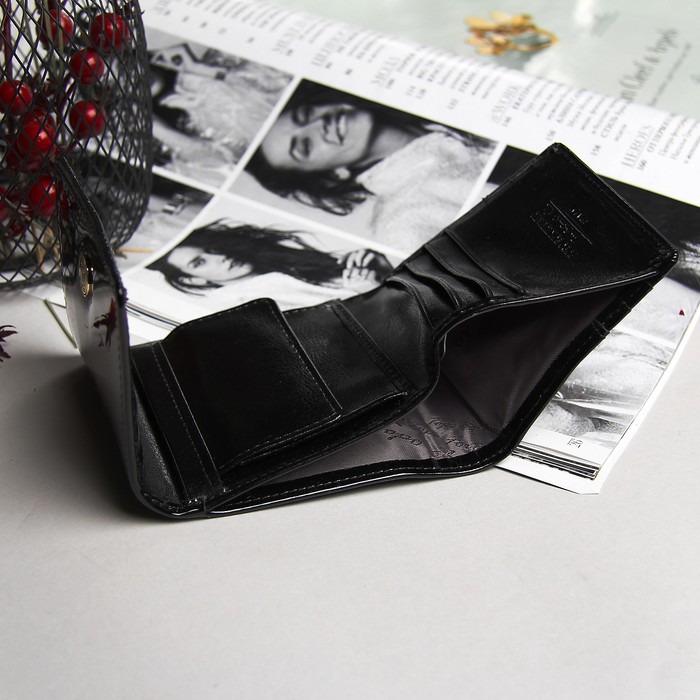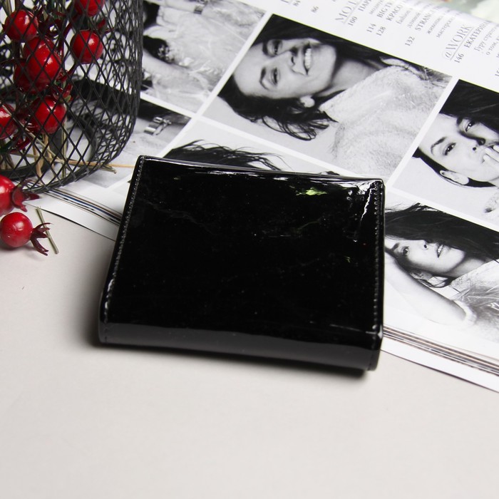 Кошелёк женский, отдел, для карт, для монет, чёрный лак