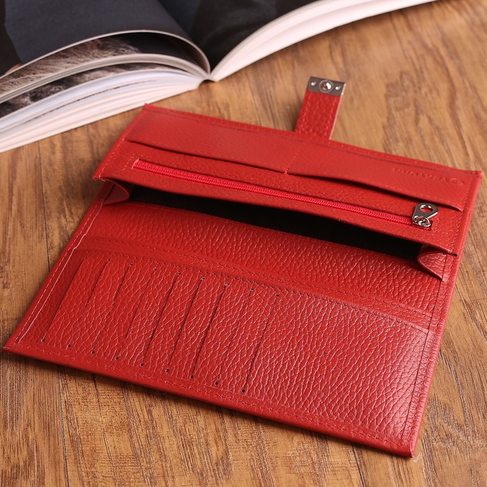Кошелёк женский, отдел, для карт, для монет, флотер, цвет красный
