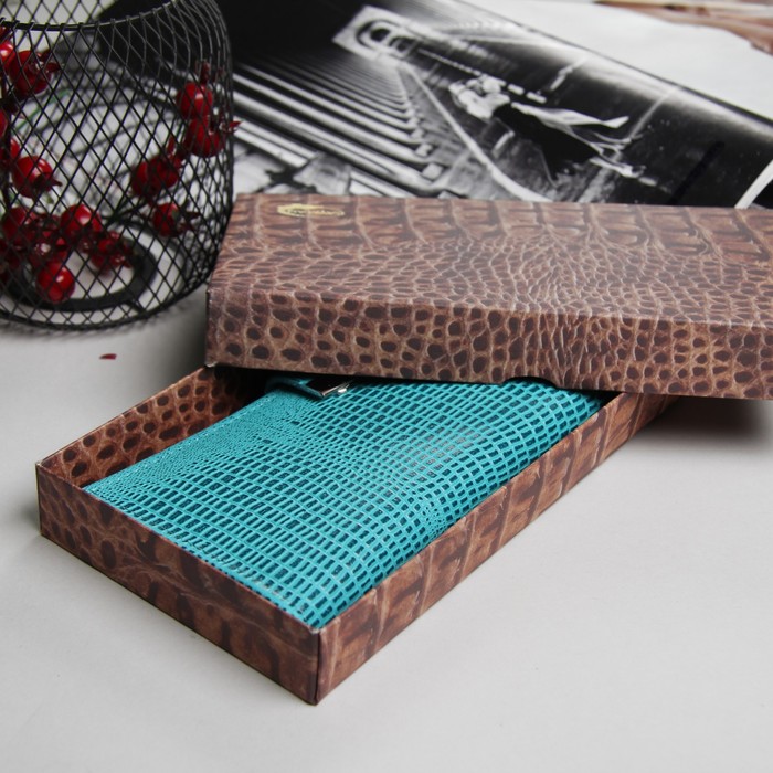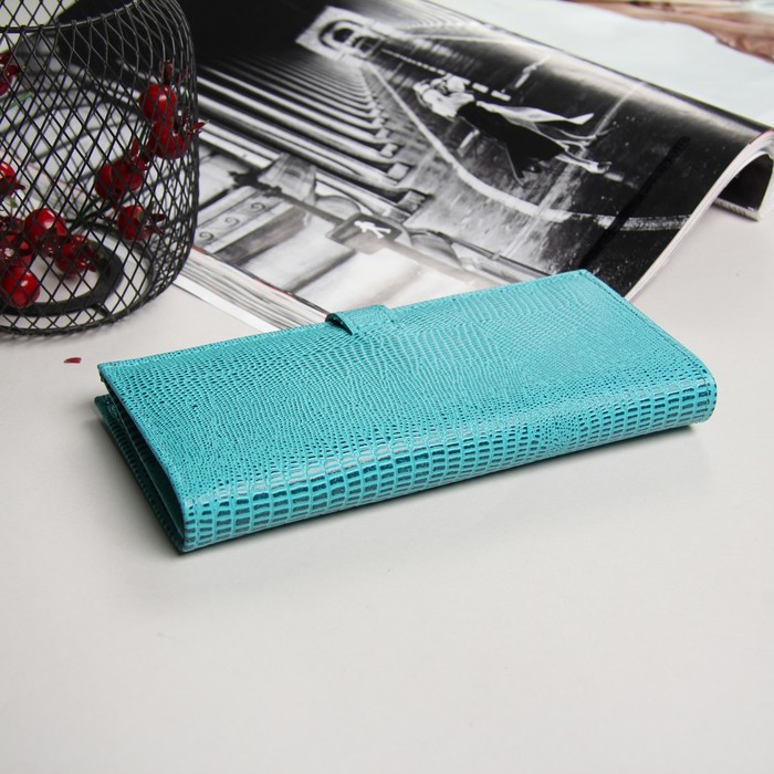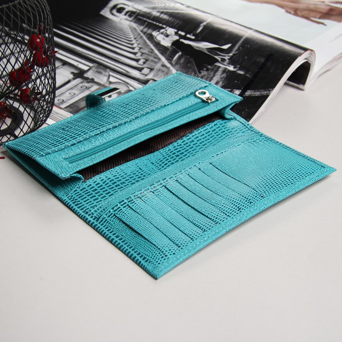Кошелёк женский, отдел, для карт, для монет, игуана, цвет бирюзовый