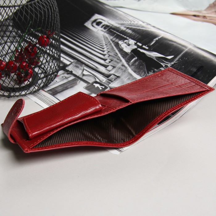 Кошелёк женский, отдел, для карт, для монет, игуана красный