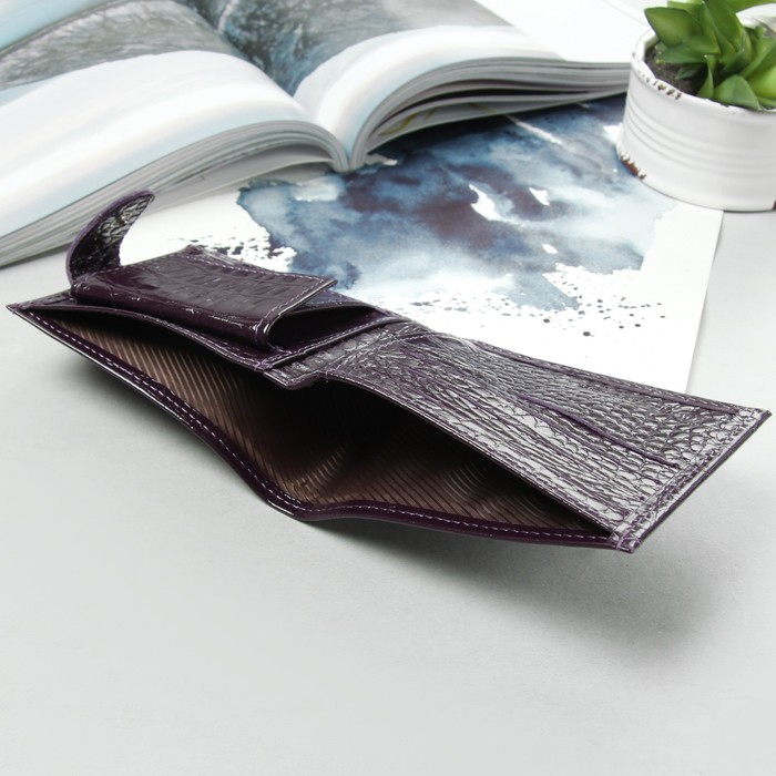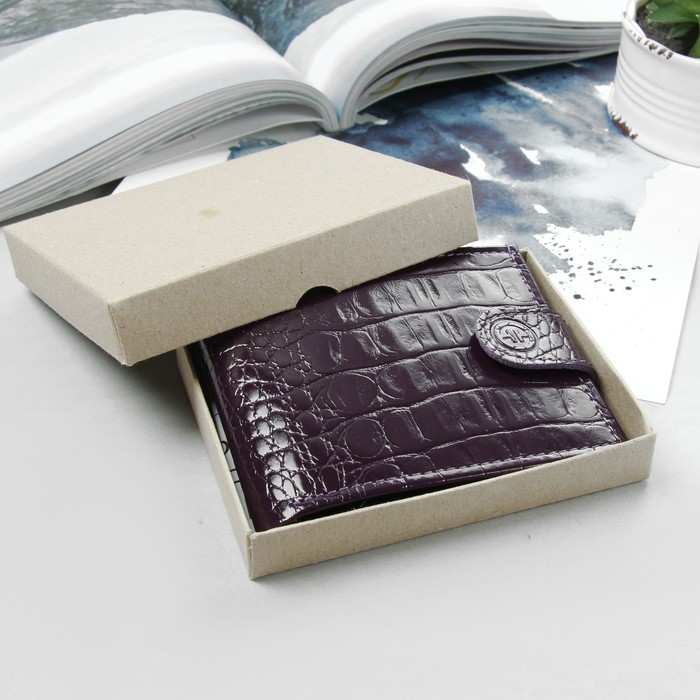 Кошелёк женский, отдел, для карт, для монет, кайман, цвет фиолетовый