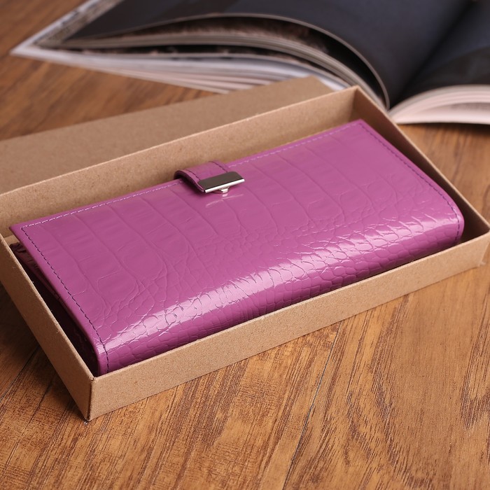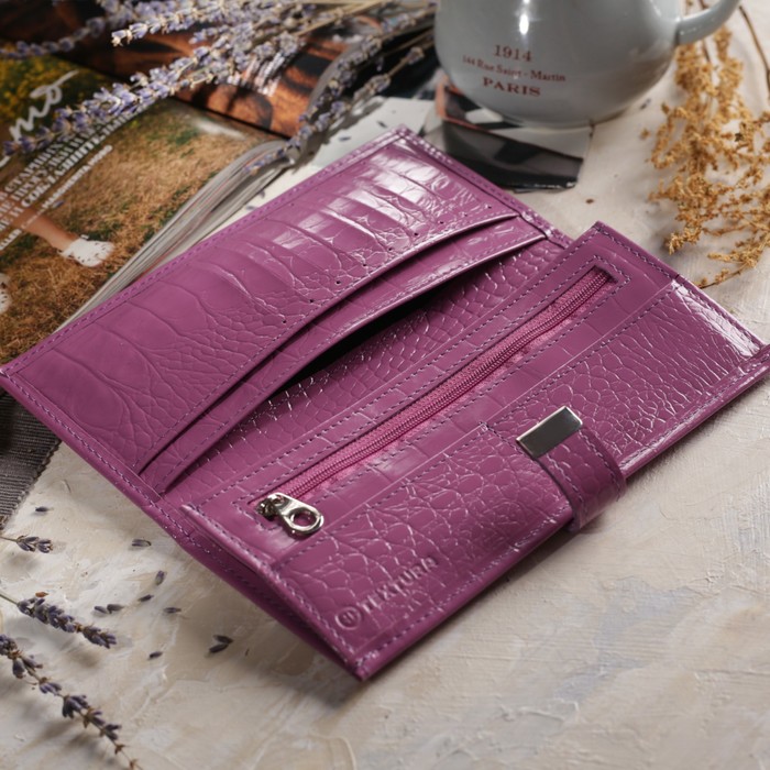 Кошелёк женский, отдел, для карт, для монет, кайман, цвет сиреневый