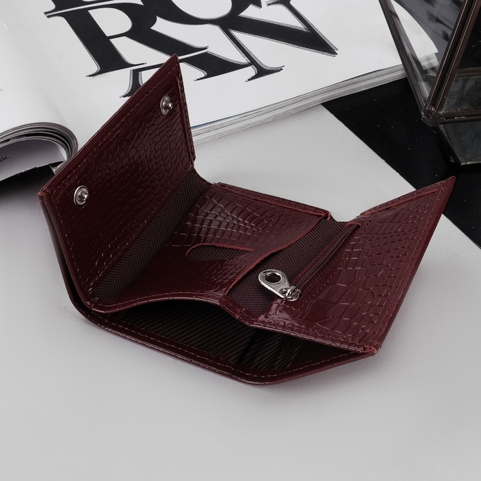 Кошелёк женский, отдел, для карт, для монет, крокодил, цвет бордовый