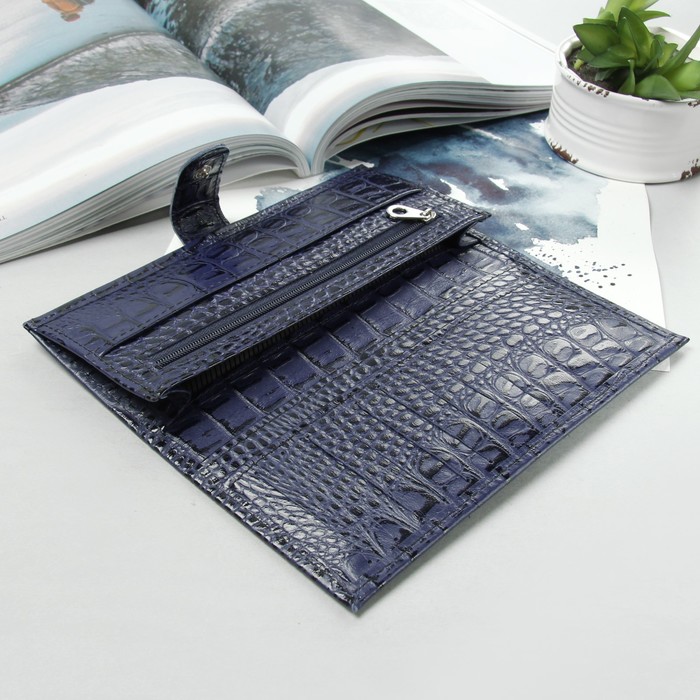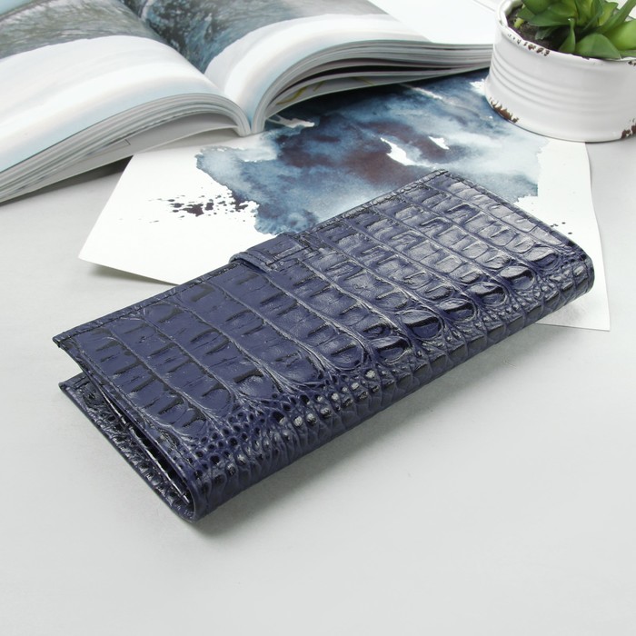 Кошелёк женский, отдел, для карт, для монет, крокодил, цвет сине-фиолетовый