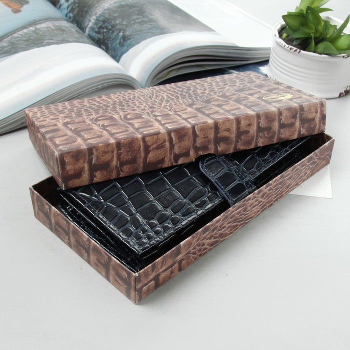 Кошелёк женский, отдел, для карт, для монет, крокодил, цвет синий