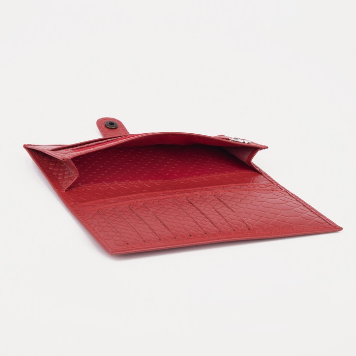 Кошелёк женский, отдел, для карт, для монет, крокодил/питон, цвет красный