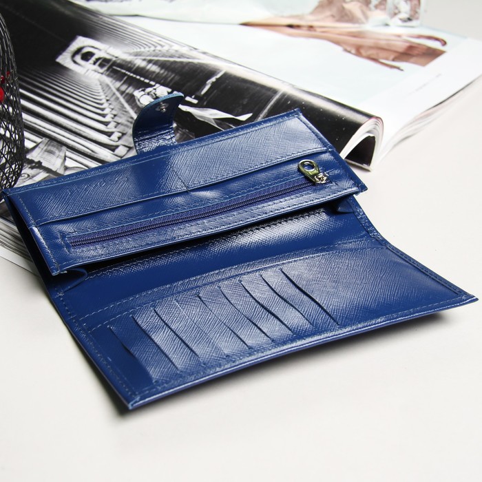 Кошелёк женский, отдел, для карт, для монет, сафьян синий