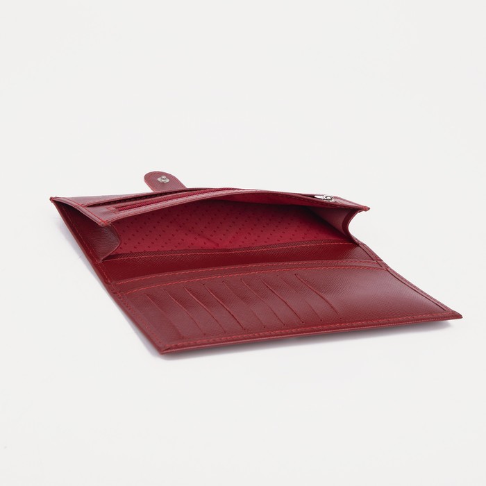Кошелёк женский, отдел для кредиток, для монет, сафьян, цвет красный