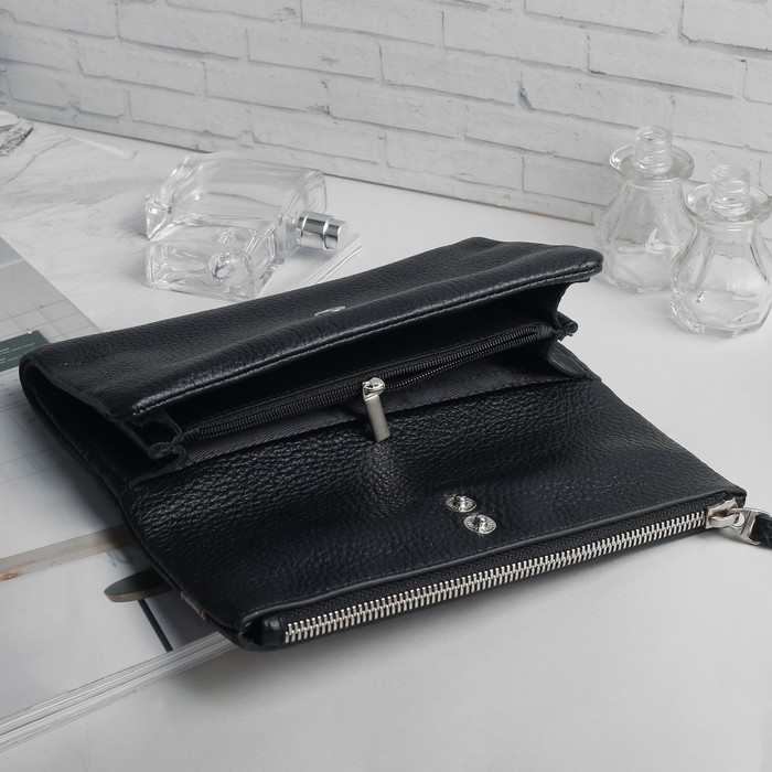 Кошелёк женский, отдел для купюр, для монет, для карт, цвет пудровый/чёрный