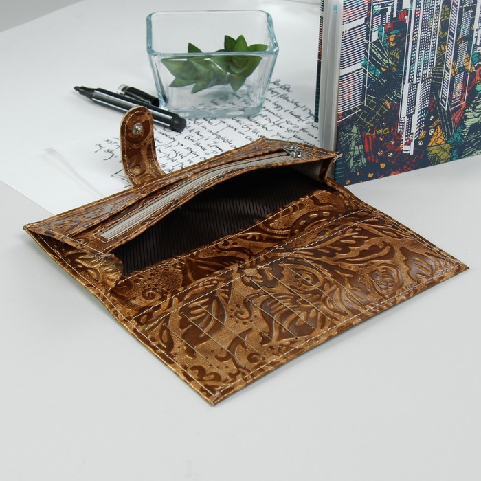 Кошелёк женский, отдел, для монет, для карт, пион золотой