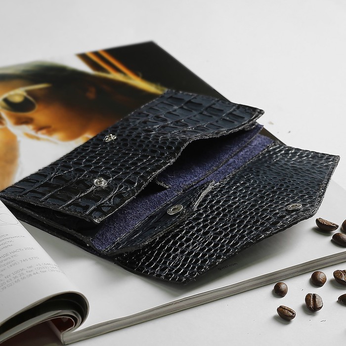 Кошелёк женский, отдел, для монет, кайман, цвет синий