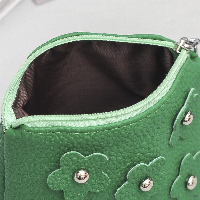 Кошелёк женский, отдел на молнии, кольцо, цвет зелёный