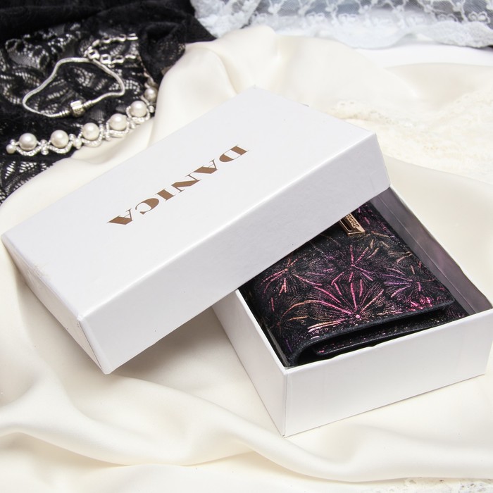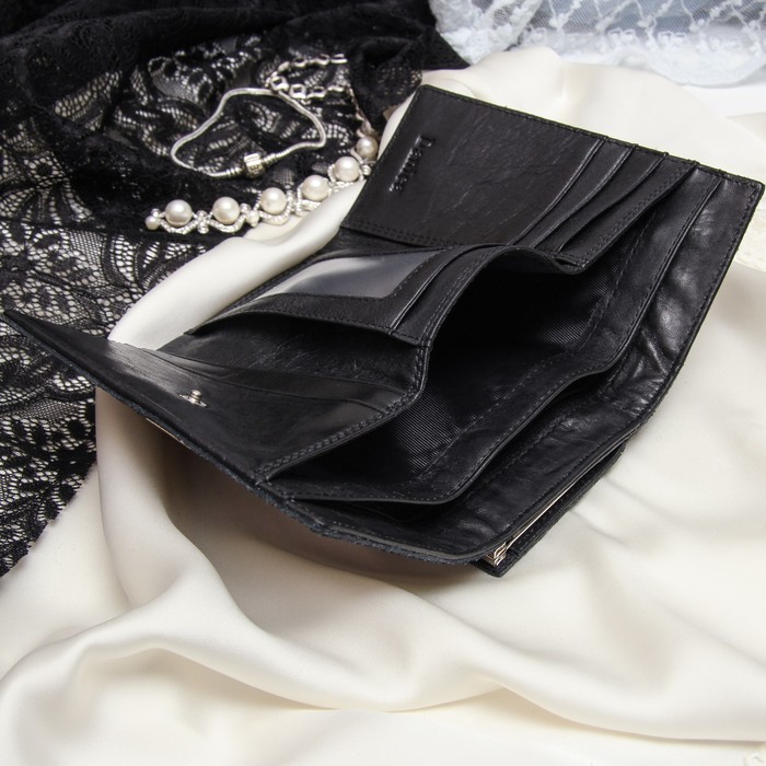 Кошелёк женский, отдел рамка, 3 отдела, для карт, для монет, цвет розовый/чёрный