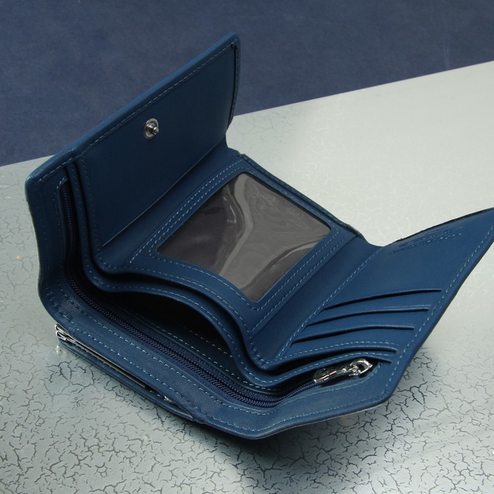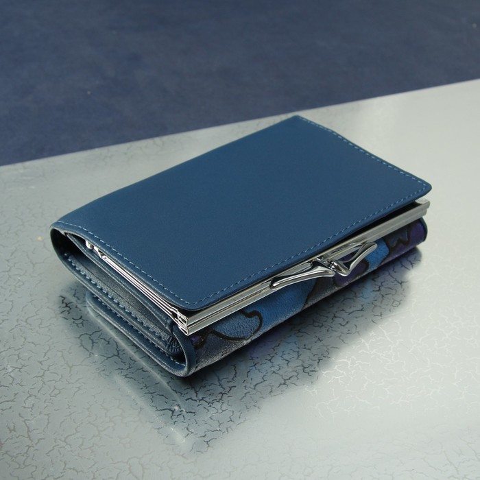 Кошелёк женский, отдел рамка, 3 отдела, для карт, для монет, цвет синий/милитари