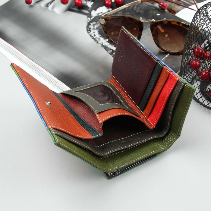 Кошелёк женский, отдел рамка, 3 отдела, для карт, для монет, цвет зелёный