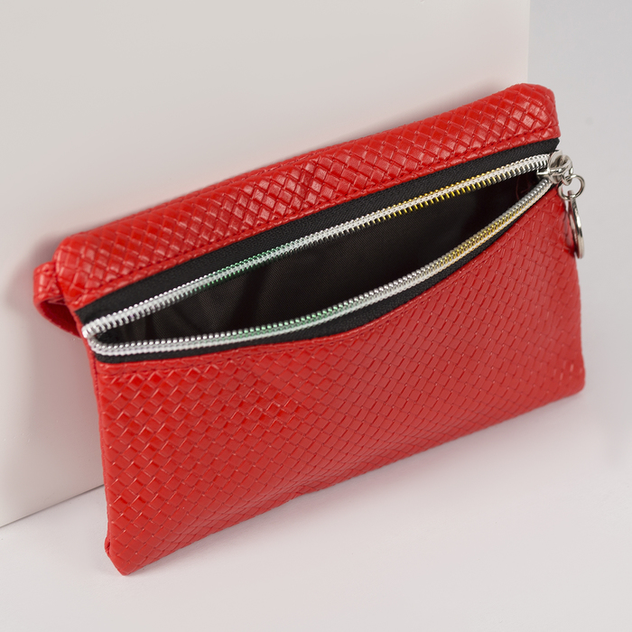 Кошелёк женский "Плетёнка", 1 отдел, ручка, глянцевый, цвет красный