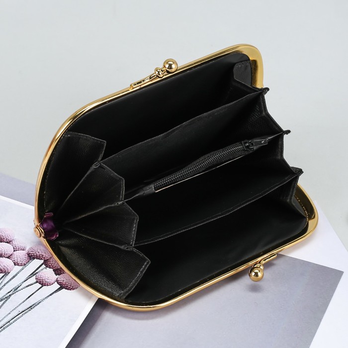 Кошелёк женский "Штрих", 5 отделов, на рамочном замке, цвет фиолетовый