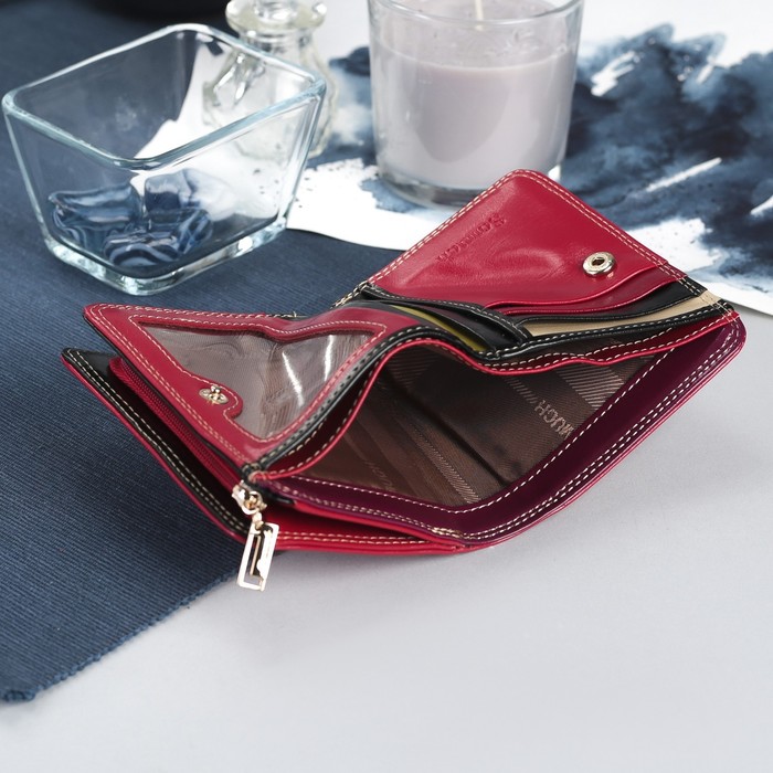 Кошелёк женский складной, 2 отдела, отдел для карт, отдел для монет, красный