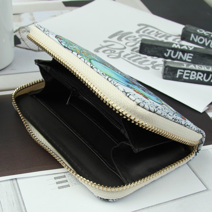 Кошелёк женский "Слоник", 2 отдела, для карт, для монет, белый/разноцветный