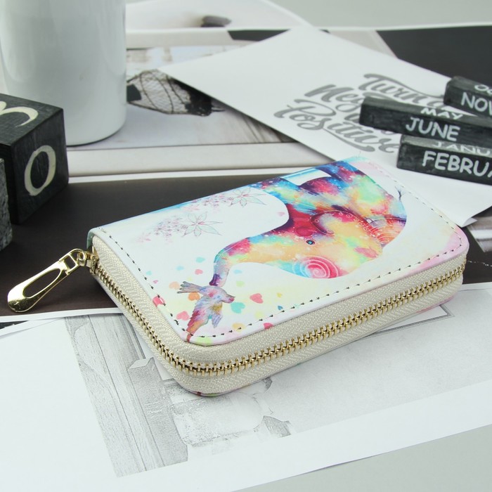 Кошелёк женский "Слоник", 2 отдела, для карт, для монет, белый/разноцветный