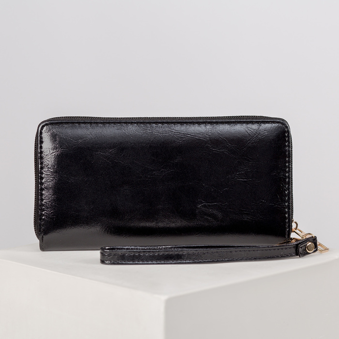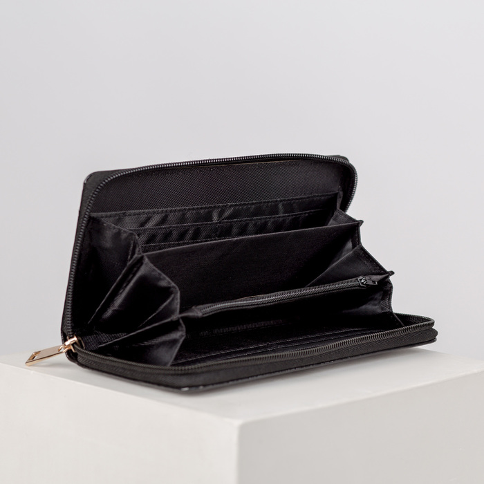 Кошелёк женский "Стелла", 3 отдела, для карт, для монет, с ручкой, цвет чёрный