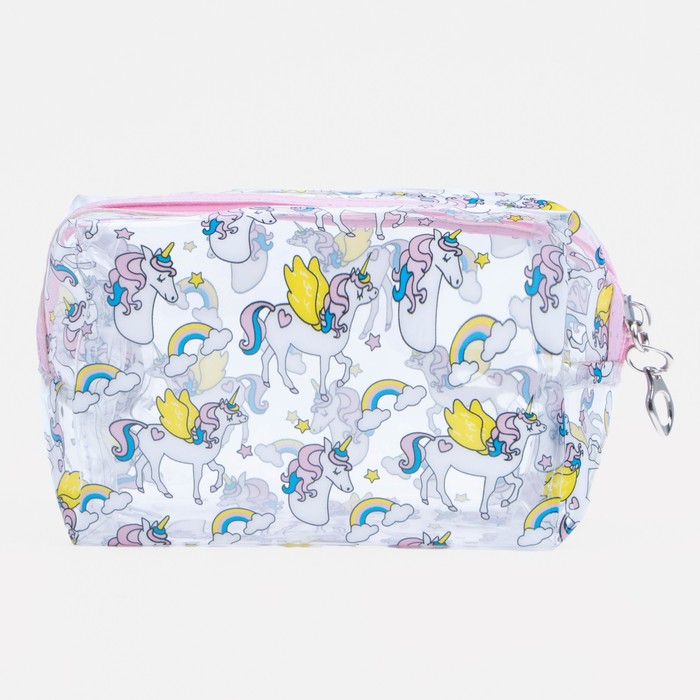 Косметичка банная на молнии "Единороги", 1 отдел, цвет розовый